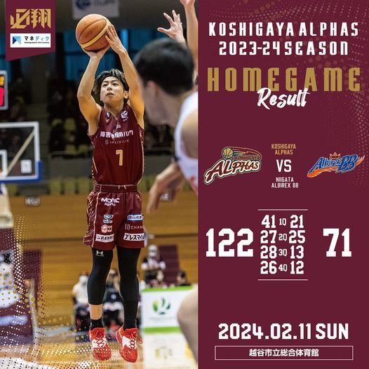 <越谷アルファーズ試合速報>B.LEAGUE B2  2023-24SEASON 第21節