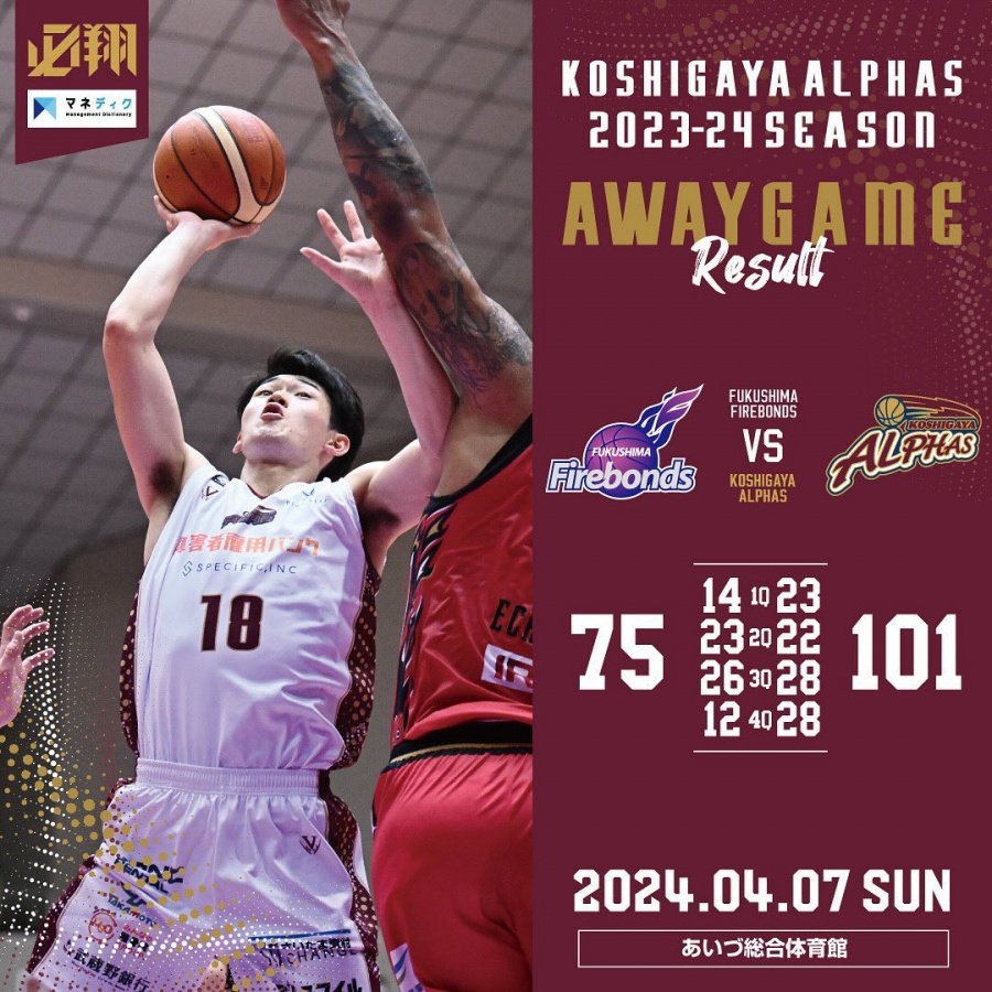 <越谷アルファーズ試合速報>B.LEAGUE B2 2023-24SEASON 第30節