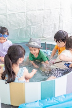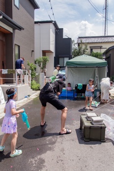 子ども達は初めからプールで水遊びと、ホースで水の掛け合いをしていて、5時間くらいは飽きずに水遊びをしていました。