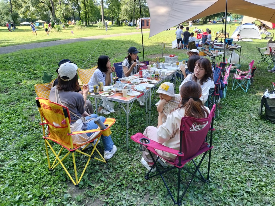 おいしいお肉に舌鼓を打ちながら、普段お話できる機会が少ないご近所さん同士でお話を楽しまれました。子ども達はお腹がいっぱいになった後、近くの遊具がある広場で遊びました。