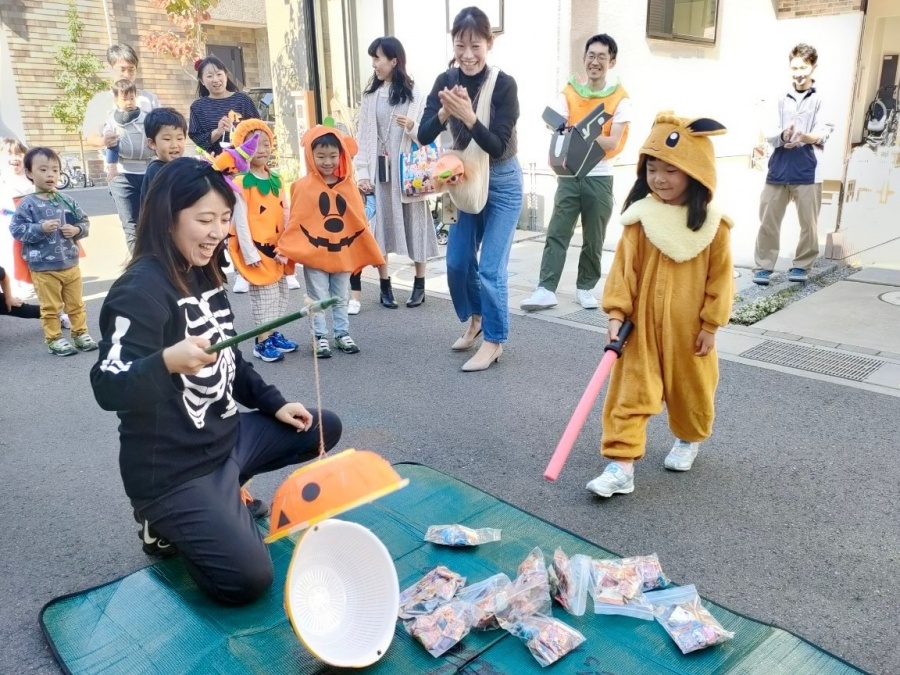 当日は、大人も子どもも仮装をして登場☆スタンプラリー形式で分譲地を回り、各世帯からお菓子をもらっていきます。
