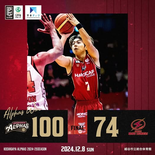 <越谷アルファーズ試合速報>りそなグループ B.LEAGUE 2024-25シーズン 第10節