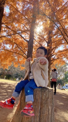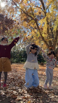 走り回ると暑いくらいの冬日和の中、落ちているイチョウや紅葉の葉をたくさん拾って飛ばしたり、しっぽ取りをしながら元気に遊ぶ子どもたち。真剣な顔でお菓子すくいに取り組んでいると、クリスマスソングをバックに、ミニサンタが登場!お菓子のプレゼントにみんな大喜び♪沢山笑って、沢山遊んで今年のクリスマスも楽しい思い出ができました。