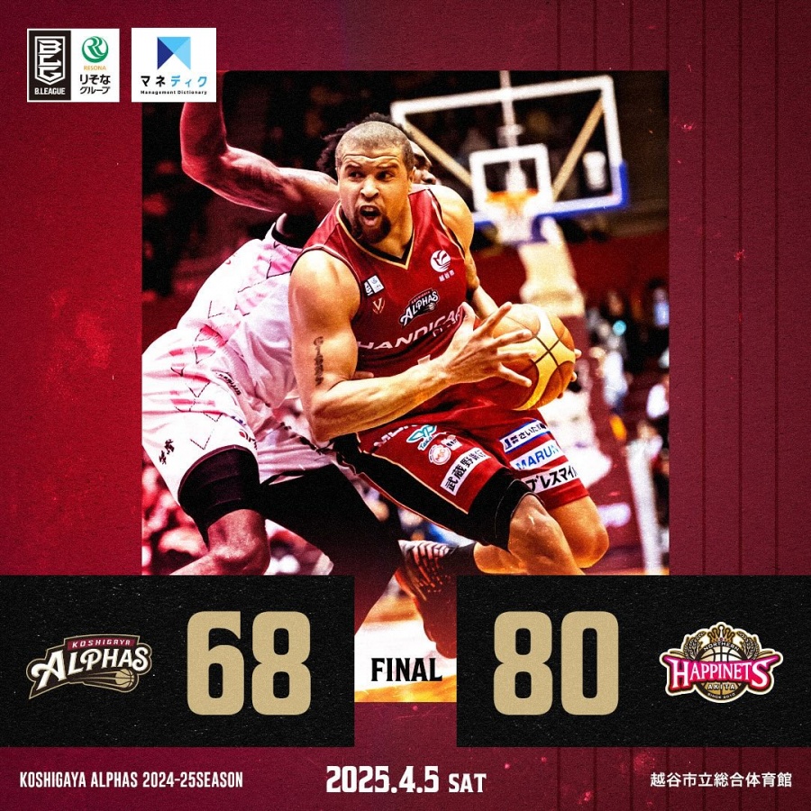 <越谷アルファーズ試合速報>りそなグループ B.LEAGUE 2024-25シーズン 第29節