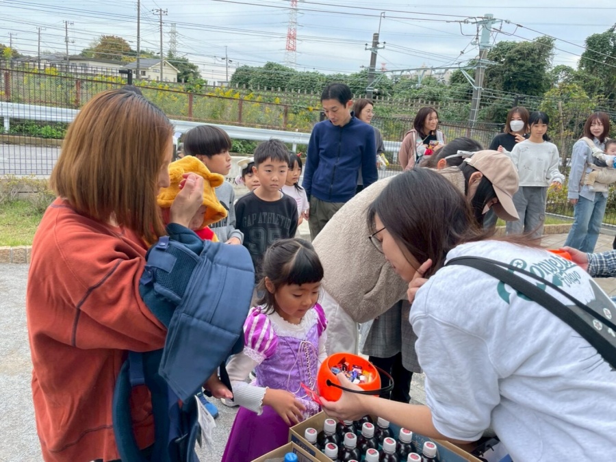 子どもたちに質問しながらHalloweenの由来を説明した後は、お待ちかねの「トリック・オア・トリート」タイムです。 可愛い仮装の子どもたちが、少し照れながらも一生懸命「トリック・オア・トリート!」と伝えてお菓子を受け取る姿が微笑ましく、見ている大人たちも思わず笑顔になっていました。