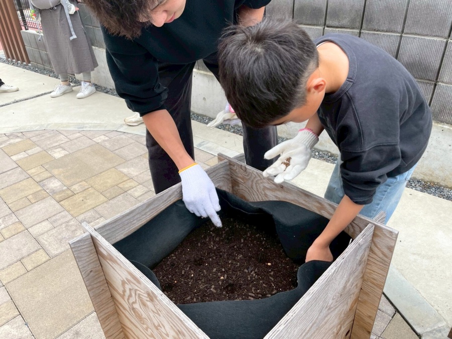 皆さんで協力しながら和気あいあいと土に触れ、子どもも大人も率先して作業する、賑やかな植え付け体験となりました。