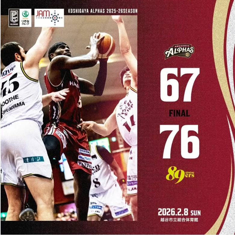 <越谷アルファーズ試合速報>りそなグループ B.LEAGUE 2025-26シーズン 第22節