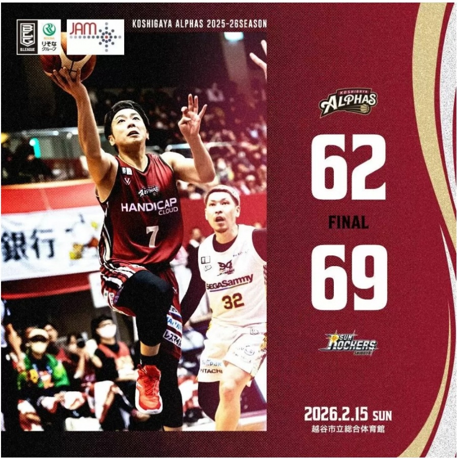 <越谷アルファーズ試合速報>りそなグループ B.LEAGUE 2025-26シーズン 第23節