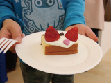異年齢の子どもたちでのチーム戦です。協力し合いつつも、各自が要所要所で工夫しながら楽しんでいました。そして大人たちも子どもたちを励ましたり応援しながら、楽しそうな子どもたちの様子に笑顔になれたそうです。ゲーム後、泡立てたホイップクリームを使いかわいいケーキを作りみんなで美味しく食べました。