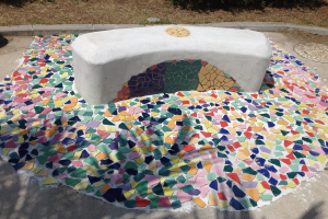 今回は分譲地内のあおぞら公園内ベンチまわりのカラータイル貼りと、庭木の植栽剪定講習会として集まっていただきました。