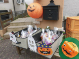 子供たちがチームに分かれてお菓子を求め、分譲地内を練り歩きます。合言葉はもちろん「トリックオアトリート!!」各チームのリーダーは小さい子供のお世話も上手です。「スタンプ押した?」「ほらほら、次に行かないと血を吸ってやるぞ~」