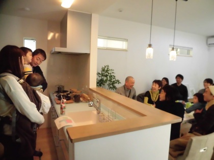 説明会後はみなさんに自己紹介、家族紹介をしていただきました。これからご近所さんになる皆さんのお話を興味深々にお聞きになっていました。交流会終了後も、お客様同士話す姿や同年代のお子さん同士でも交流が生まれていました。