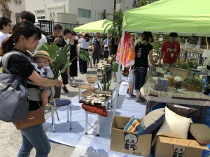 隣ではインテリア小物市を同時開催。掘り出し物を探しながら、ご近所さん同士でごあいさつ。すでに顔なじみの方も初めましての方も交流を楽しまれていました。