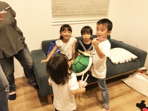 子供達は家の中で自由に遊び回って楽しんでました。大人たちはお座りができるようになった赤ちゃんに癒されながら飲んで食べて楽しくお喋り。途中パパ達は子供とゲームをしたりして遊んでくれていたそうです。