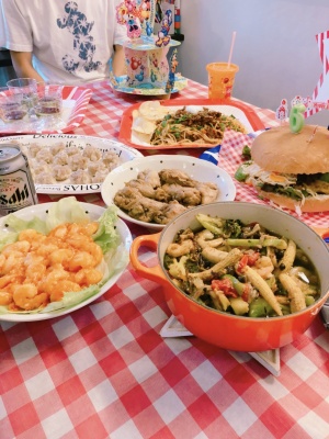 皆で集まるときはすっかりおなじみとなった各世帯1、2品の料理の持ち寄り♪事前に何を持っていくか話しているのでメニューも豊富に楽しめます!