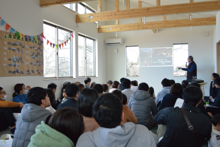 今回は、26家族のお客様にお集まりいただき、自治会役員より地域のお話、弊社よりご入居者の皆様に安心してお住まいいただくための協定についての説明をさせていただきました。また、今回の会場である新たにオープンした自治会館”みずべのアトリエ”の紹介を、まちづくりサポーターの代表よりしてしていただきました。みなさん興味津々の様子で真剣に耳を傾けられていらっしゃり、ご入居者様のコミュニティの意識の高さが感じられました。