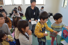 「ビンゴカードを引いてくれるお友達集まれ~」の呼びかけに、元気な子ども達が率先してお手伝いをしてくれ、名前を呼び上げてくれました。