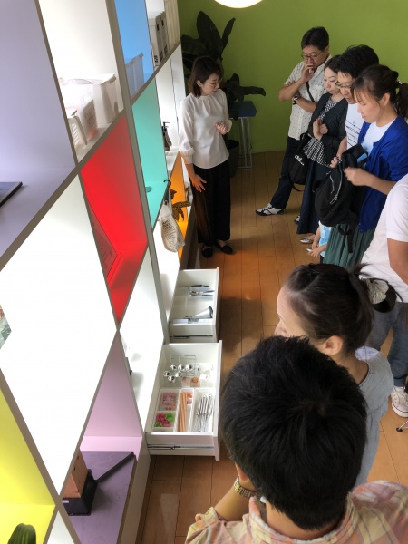 次に会場内にセットされた収納コーナーに移動し、クローゼット、洗面所、キッチン、キッズコーナーなどの実際の収納をイメージして、収納のポイントを学んでいただきました。