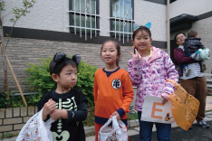 イベントが始まると子どもたちがお菓子をもらいに分譲地を回っていきます!ひと通り回ったらスタート位置に戻ってコール!全員がゴールしたら写真撮影をし、最後はくじ引き大会で盛り上がりました。