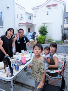 パパさんが作ってくれた冷たいかき氷を食べてクールダウン☆ヨーヨー釣り、射的、水風船・水鉄砲と盛りだくさんのコーナーを楽しむ子どもたち。大人たちは、なかなか会う機会がない人たちとも会えて近況報告をしあい、交流を深める機会となりました。クライマックスの花火を満喫し、たくさんの夏の思い出ができました。