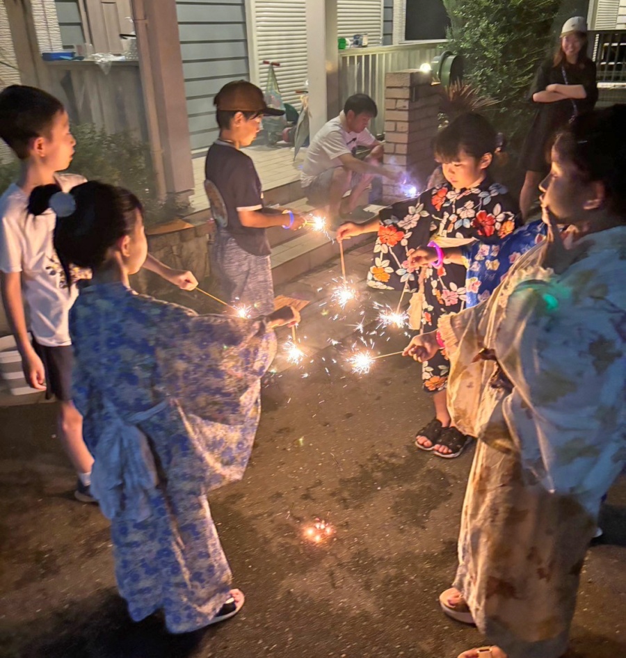 日が暮れてから、浴衣や甚平に着替えて再集合。クライマックス花火を満喫し、今年の夏もたくさんの思い出ができました。