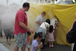 訓練の内容は、煙体験、起震車による揺れ体験や初期消火を学び、体験しました。また、備蓄倉庫の紹介、再確認もしっかりと行いました。