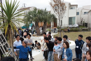 分譲地のコンセプトは「美しき地中海リゾート」。風にそよぐ木々の緑と白い外壁がまぶしく光るさわやかな空の下、多くのご入居者様にご参加いただきました。